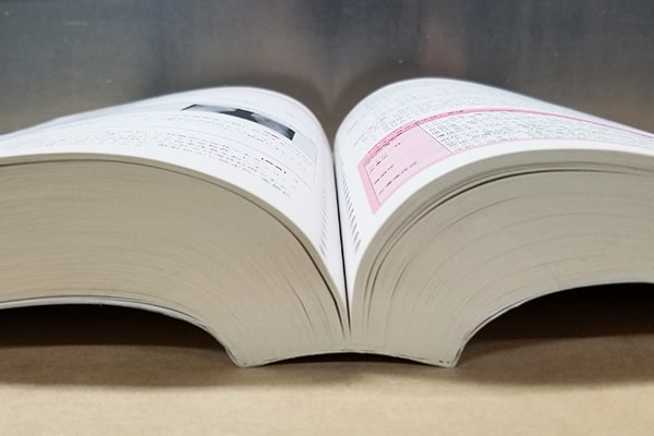 - 無線綴じとは、本文の背にホットメルトと呼ばれる糊を接着し 表紙をくるむ製本方法で、厚みのある本や耐久性に適しています。並製本とも呼び、主に文庫本、一般書籍、学習参考書、コミック、専門書、カタログ等、書店に多く見られます。文京各社ではミリオンセラーを手掛ける会社が多数有り、極薄本から極厚本、小判から大判、小から大ロッドまで対応出来るのも特徴です。